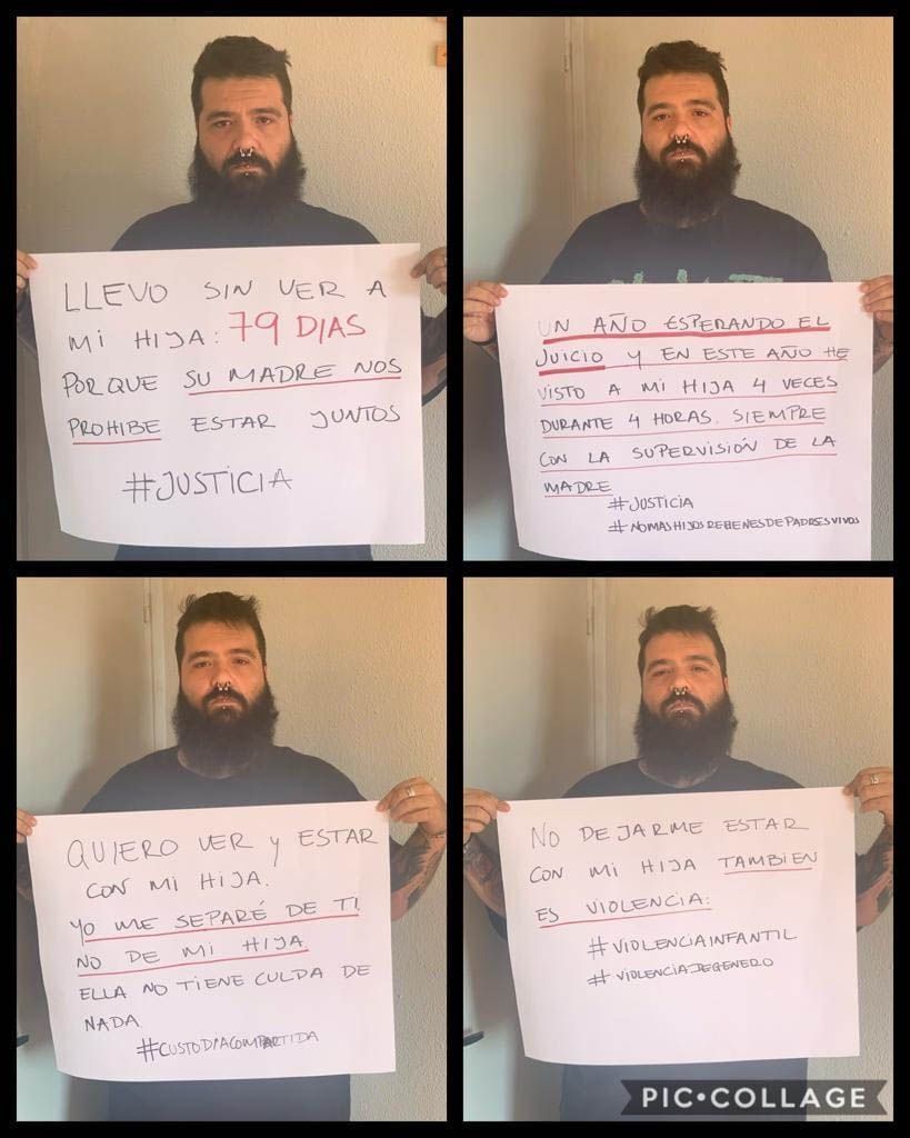 En la publicación, Jonathan relata su historia: “Llevo desde el mes de Octubre de 2019 sin poder estar a tu lado. Cinco meses han pasado desde la última vez que te abracé y te besé. Tres meses sin saber cómo estás, dónde estás y con quien estás. Aún conservo los regalo de Reyes en casa, envueltos, intactos para ti. Aun no entiendo cómo es posible que haya personas capaces de hacer tan cruel maltrato infantil hacia mi hija y hacia mi persona (porque lo creáis o no, es maltrato) lo que pasa que la igualdad entre sexos, esa que tanto presume el Estado y su Ministra de Igualdad, está oculta, y solo por el hecho de ser hombre, no tengo derechos y no puedo quejarme ni hacer nada”.