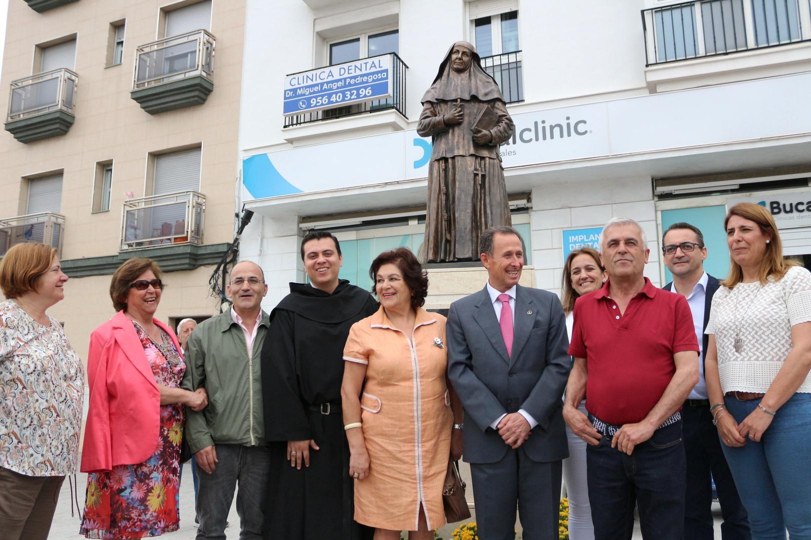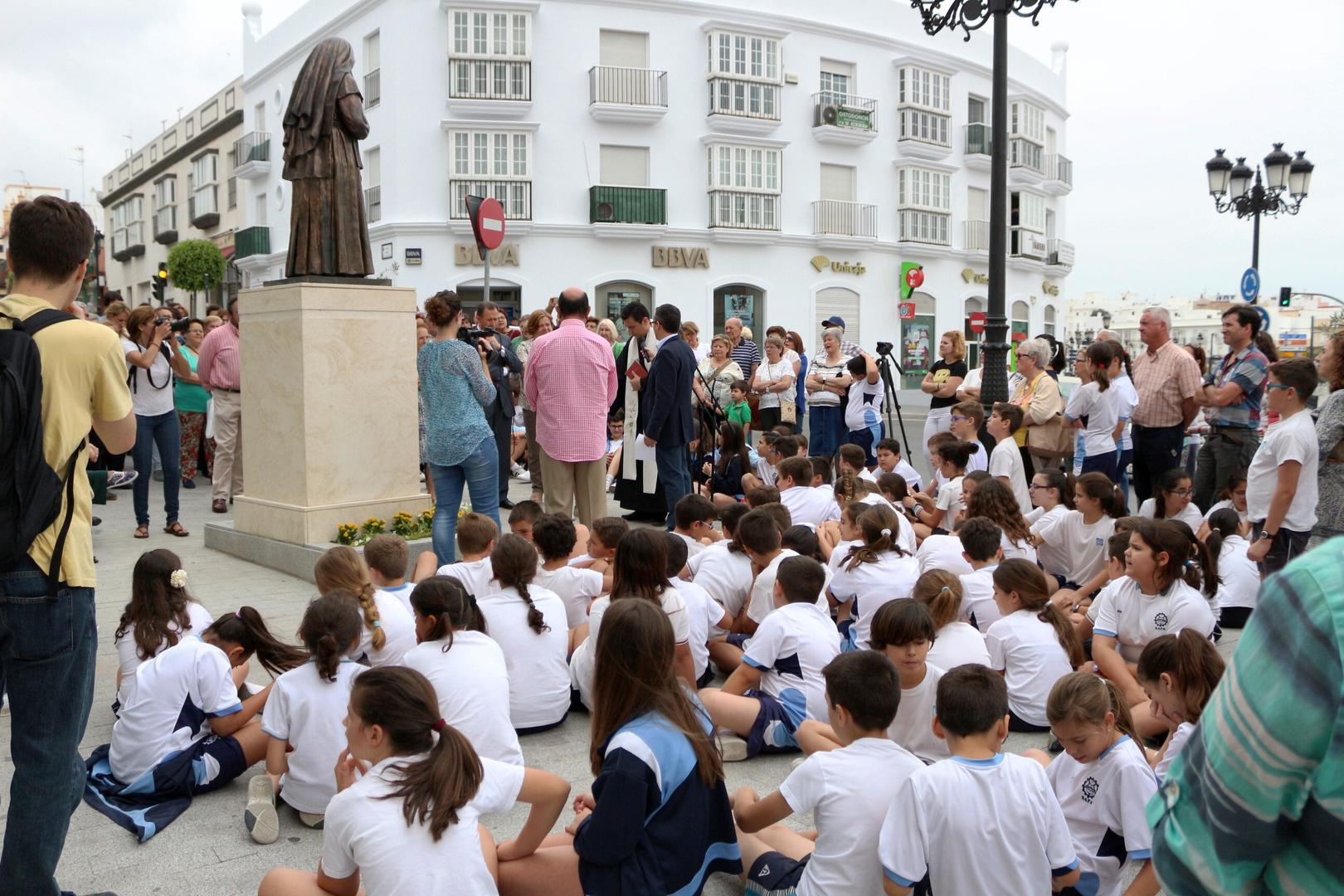 El alcalde de la ciudad, José María Román, y el párroco de la Iglesia de San Sebastián, Gustavo Camarena, han descubierto la estatua dedicada a Santa Ángela de la Cruz en la ubicación que ocupará a partir de este momento en la Plaza de Andalucía. Un acto en el que también han estado presentes los delegados de Vías y Obras, Servicios Sociales, Participación Ciudadana y Urbanismo, Cándida Verdier, Francis Salado, Mª Ángeles Martínez Rico y Ana González, respectivamente, así como parte de la Corporación, vecinos de la zona y alumnos y representantes del colegio SAFA.