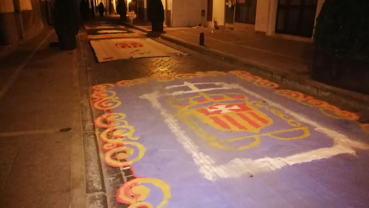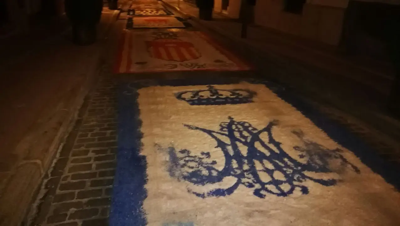 Los jóvenes de varias Hermandades como La Borriquita, La Misión y El Crucifijo han ido a arreglar de nuevo las alfombras por la mañana tras conocer la noticia.