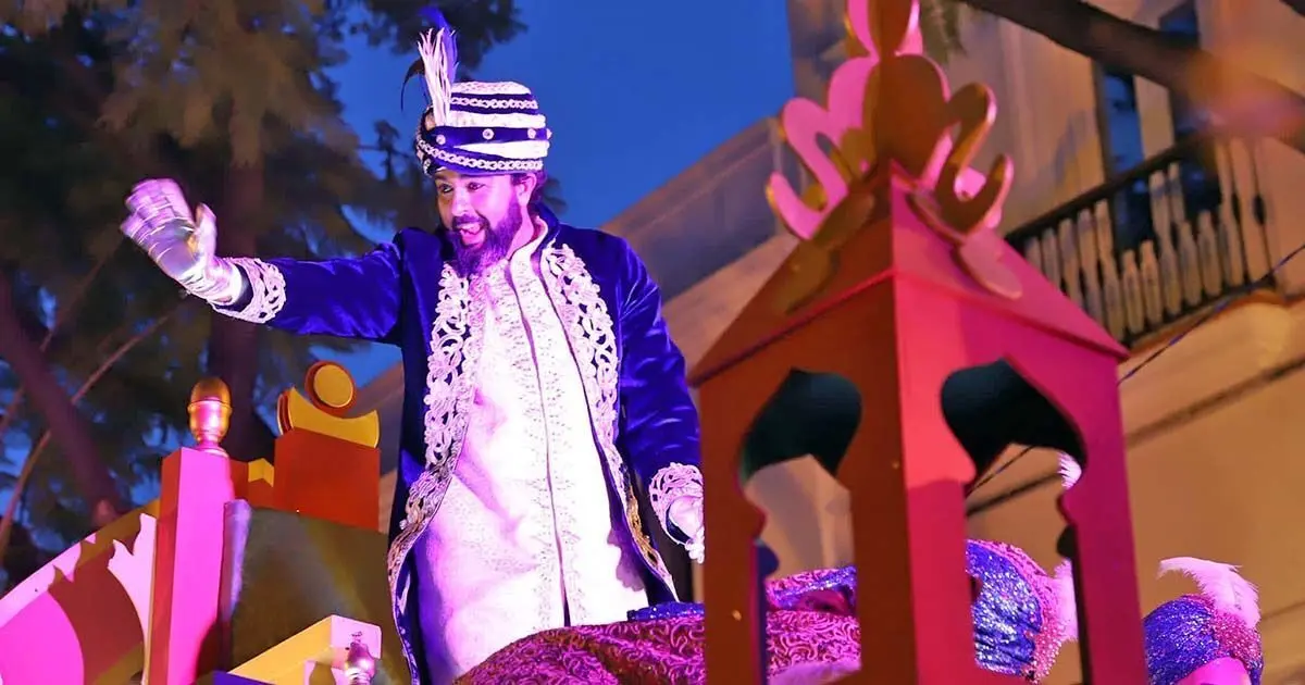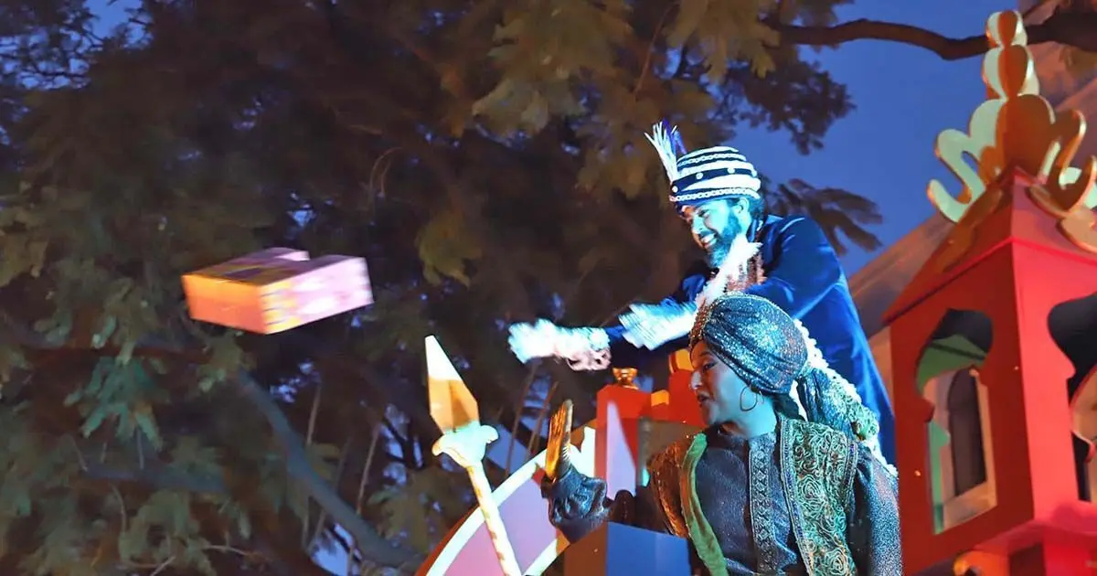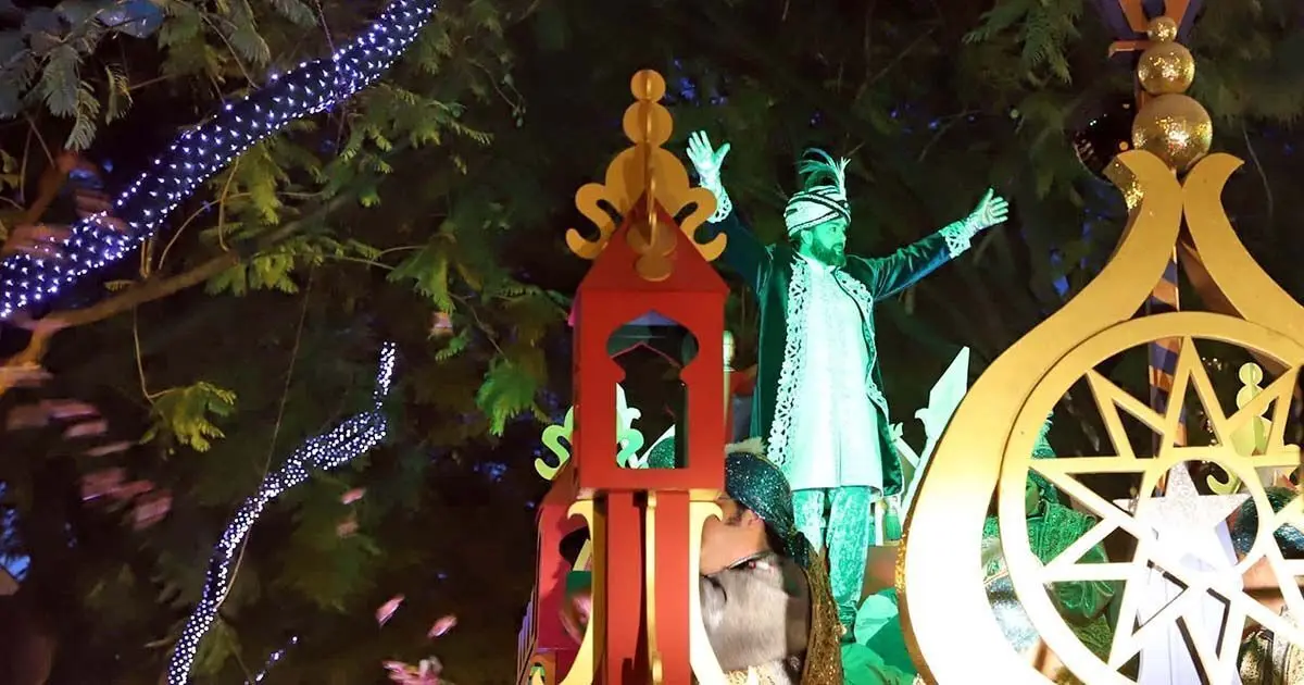 Cada año el cortejo de la cabalgata aumenta y en 2020 contó con casi seiscientas personas y dos carrozas. A la del Gran Visir, gran protagonista, le acompañó una de personajes Disney, con Mickey Mouse a la cabeza.