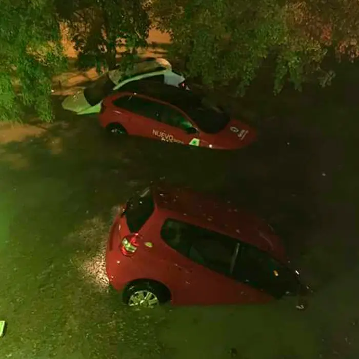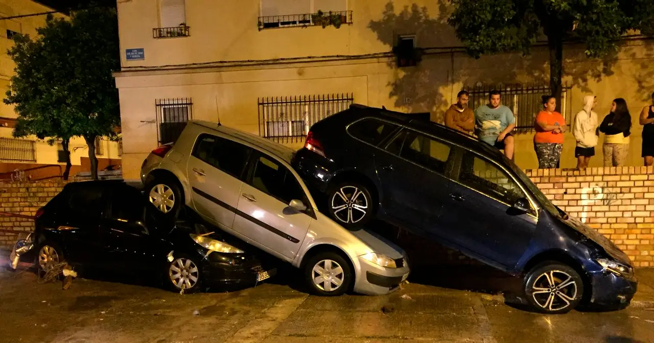 Varias barriadas de la ciudad afectadas con coches volcados o subidos unos encimas de otros