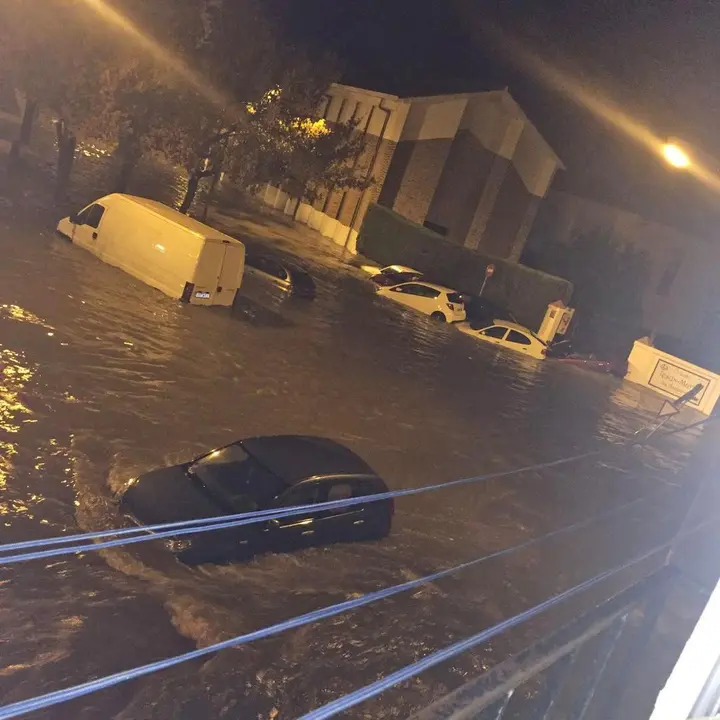 Los truenos y los relámpagos eran los antecedentes de la lluvia que llegaría un poco después. Las primeras lluvias de otoño han ocasionado inundaciones en varios puntos de la ciudad. Las barriadas de La Asunción, Las Delicias, La Granja u otros puntos del municipio como calle Arcos o Porvera se han visto afectados por esta tempestad, quedando anegadas.