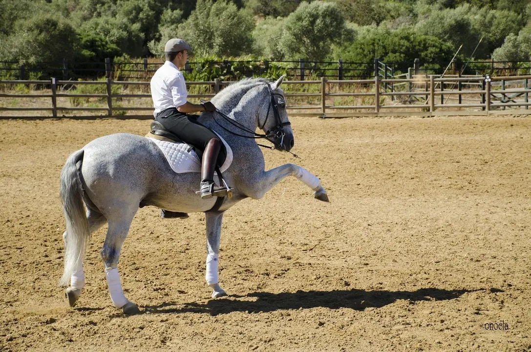 A continuación podemos disfrutar de una exhibición de la alta escuela española pudiendo apreciar la maestría, arte, y belleza por parte del caballo y el jinete al son de la música. Unas pinceladas de una de las ramas de la equitación de las más antiguas que se conocen, haciendo que caballo y jinete sean uno y bailen al mismo son.