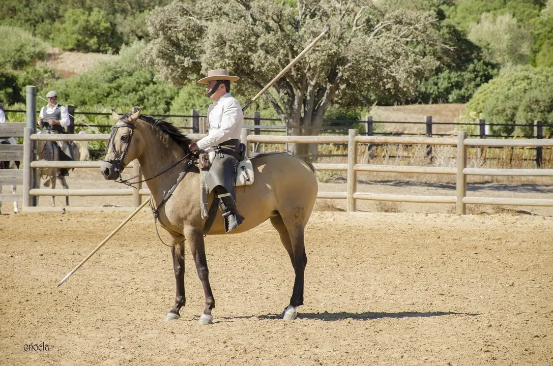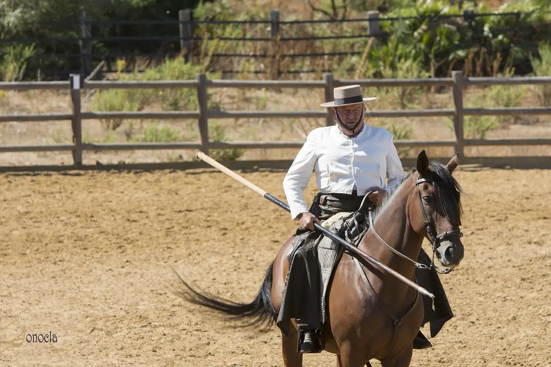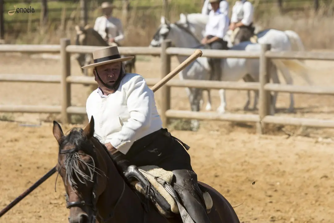 Después de estos momentos de asombro por parte del público por la experiencia vivida de cómo se destetan los becerro en la finca, podemos apreciar una trabajo de doma vaquera por parte de uno de los jinetes. La doma vaquera consiste en realizar una sucesión de ejercicios que se ejecutan en el campo para trabajar con el ganado vacuno. Una muestra más podemos apreciar el arte que este oficio tiene.