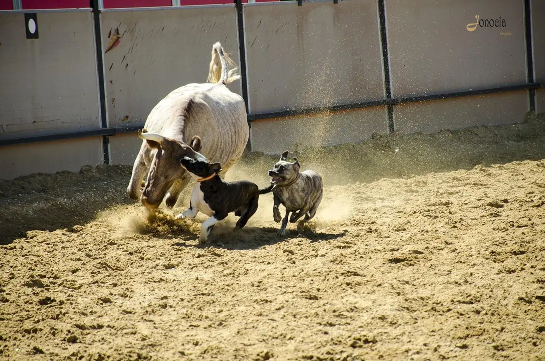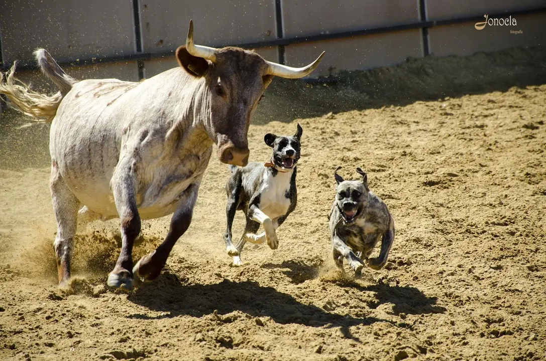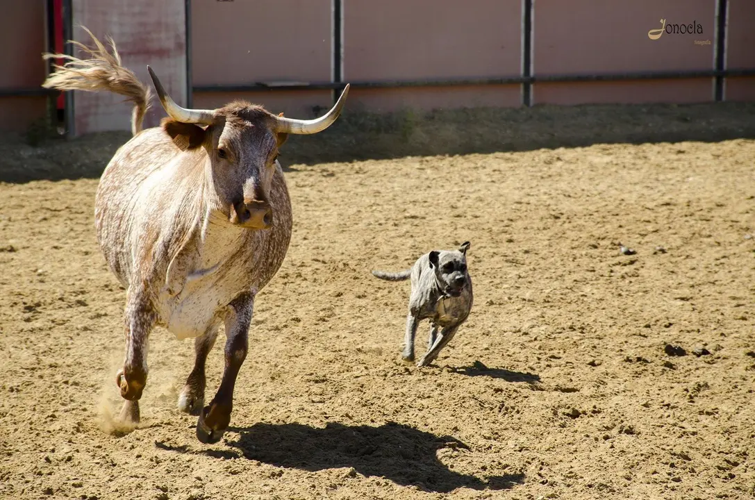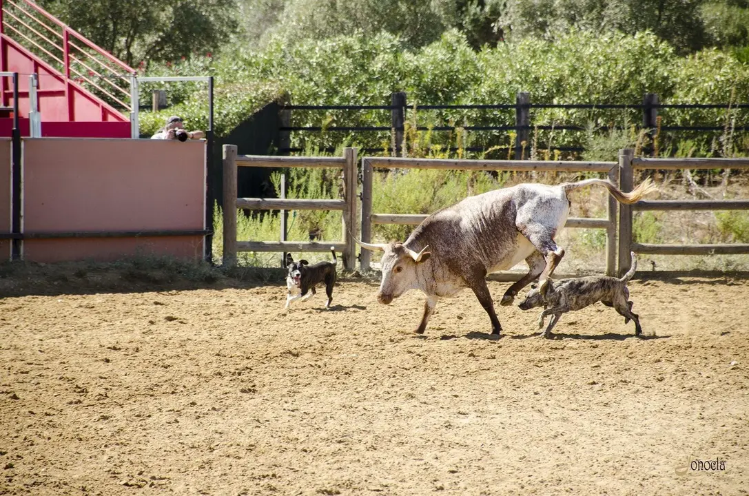 Varios jinetes separan a la vaca del becerro y es entonces el turno de los perros cuidadores del ganado, que consiguen que esas vacas salgan del picadero para así quedar solamente los becerros. Es un momento de lucha entre animales en el que la fuerza y la destreza luchan para ver cuál es la más poderosa. Supervivencia en estado puro. Supervivencia en estado natural.