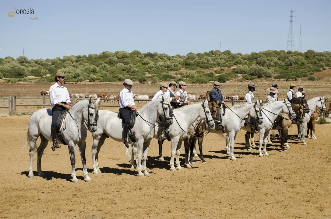 Un vez que todos los jinetes has saludado al público, comienza el espectáculo. Un guía narra y explica en varios idiomas, de forma continuada, como son las diferentes etapas de la vida de las cabezas de ganado que componen la ganadería brava de Torrestrella y los famosos caballos de Álvaro Domecq. Primero los jinetes nos muestran las “señas de identidad del toro bravo”, los hierros que marcarán a fuego la procedencia de la res para poder diferenciar a qué vacada pertenecerá cada animal, evitando equívocos referidos a la propiedad de la res cuando las vacadas pastan casi en estado salvaje.