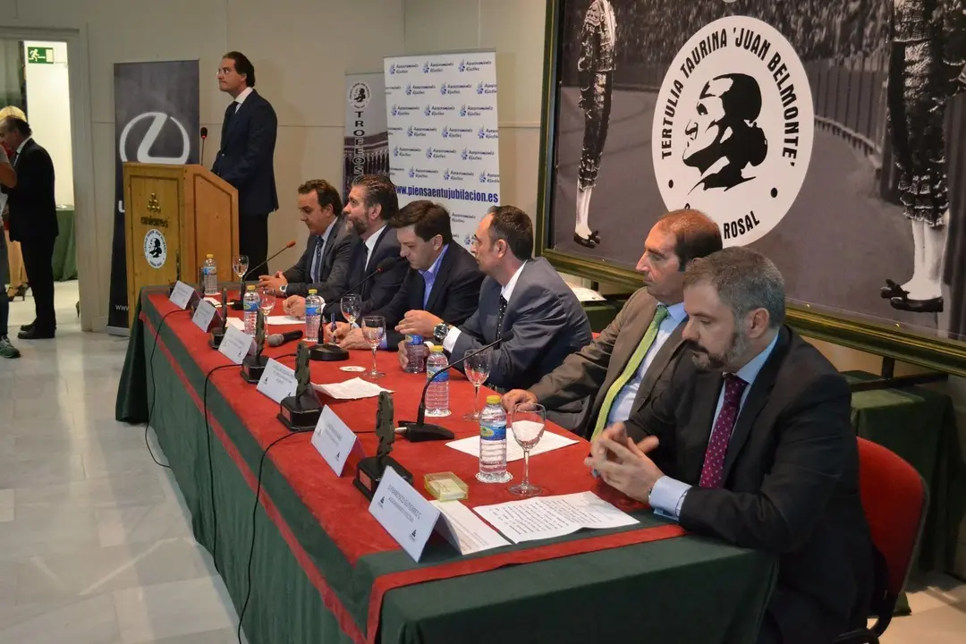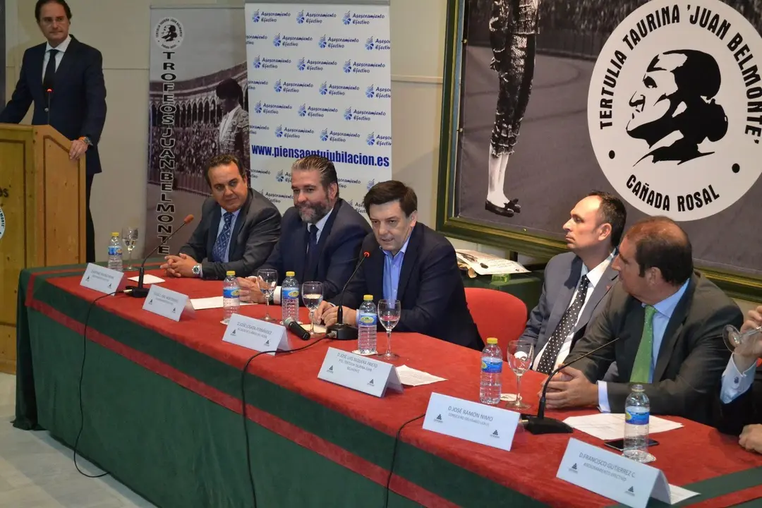 La mesa presidencial estaba ocupada por el alcalde de Cañada Rosal, el presidente de la Tertulia y los representantes de las empresas patrocinadoras. El salón de actos se encontraba repleto de público; en él destacamos amigos de la familia belmontina, vecinos de Cañada Rosal, incluyendo el párroco y el concejal de Cultura, aficionados en general y algunas caras conocidas del mundo del toro, como los toreros Dávila Miura y Martín Pareja Obregón, los subalternos “El Ecijano” y Rafael sobrino, los ganaderos Eduardo Miura, Carlos Núñez y José Murube, el doctor Ramón Vila, el empresario de la Maestranza Ramón Valencia o la modelo Raquel Revuelta.