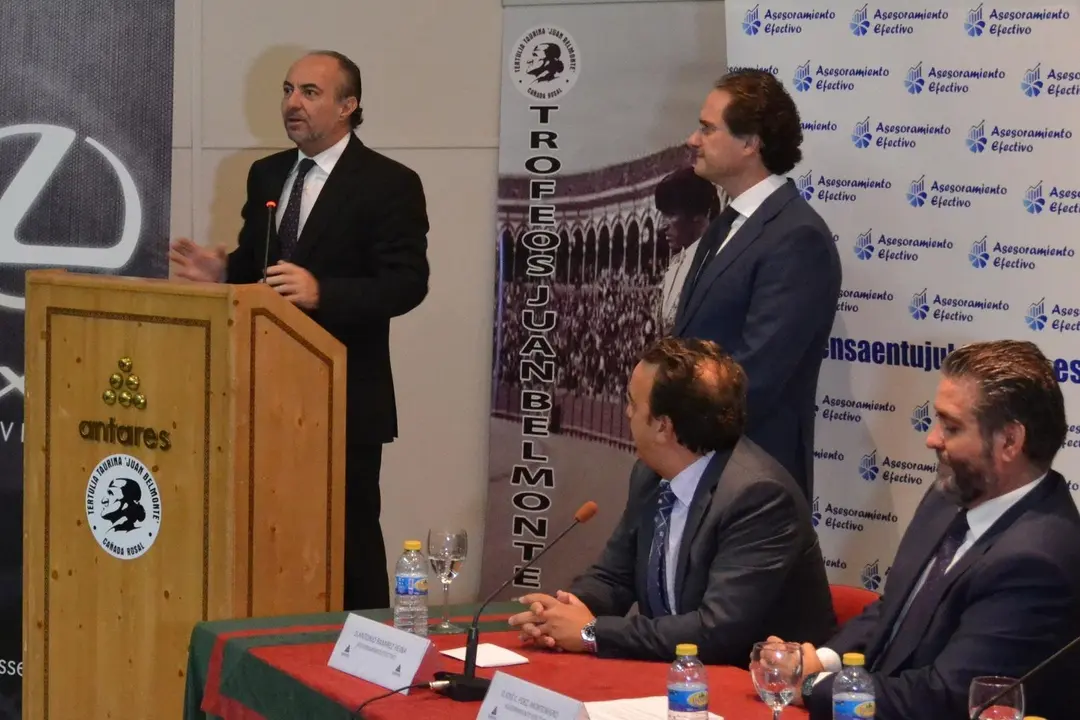 El periodista José Enrique Moreno condujo el acto y, tras el saludo, le dio la palabra al presidente de la Cámara de Comercio, Francisco Herrera León, que se extendió sobre la existencia del Club Antares y su reciente integración en la Cámara, para luego dar la bienvenida a la entrega de premios y ofrecer sus locales a la entidad organizadora, de la misma forma que otras tertulias recreativas se asientan allí. A continuación intervinieron los representantes de las firmas patrocinadoras Carlos Hernández, Antonio Garrigues y Francisco Pérez, así como el presidente de la Tertulia Taurina “Juan Belmonte Cañada Rosal”, Luis Sequera, antes de pasar a la entrega de trofeos.