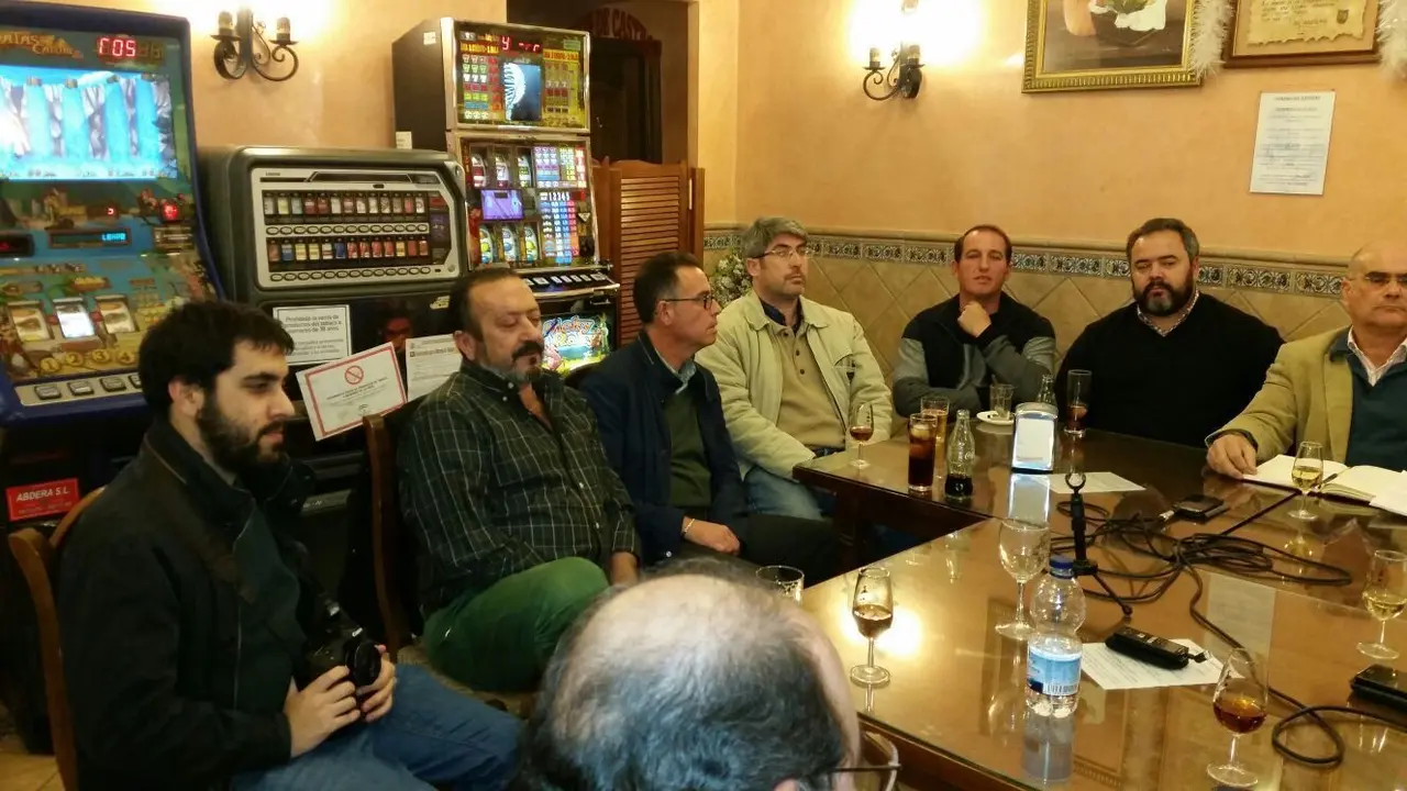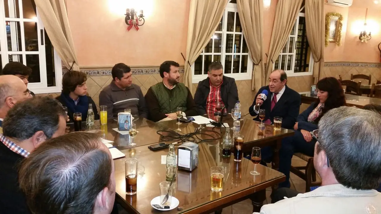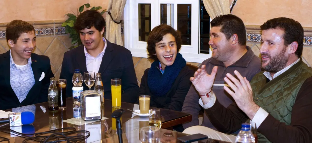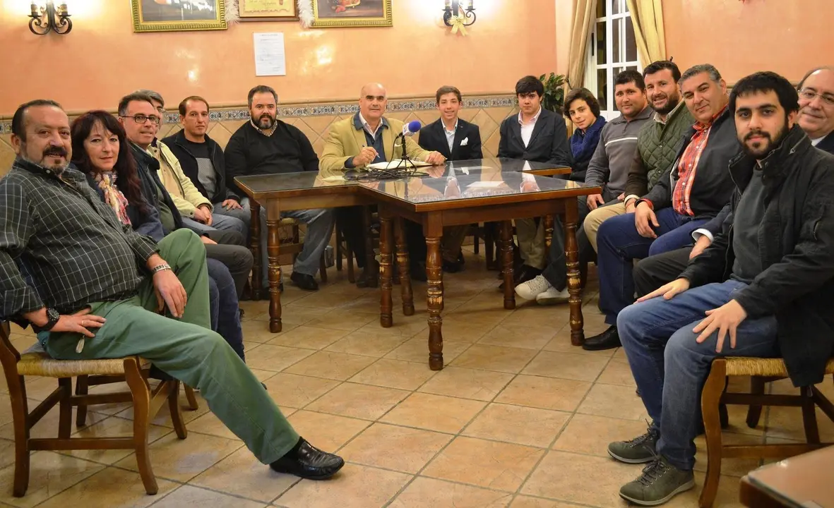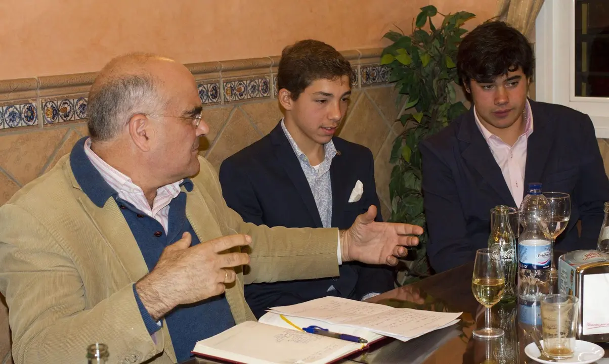 En esta ocasión estaban alrededor de la mesa de tertulia hasta catorce contertulios: el profesional en activo Tomás Loreto, banderillero en la cuadrilla de Jesulín de Ubrique, los antiguos alumnos de la Escuela de Tauromaquia de Jerez, Rafael Macías, Raimundo Ramírez, Benito Carral, Eduardo Navarro y José Manuel Flores, los alumnos actuales Rafael Camino, Ignacio “Candelas” y Iván Ruiz, los miembros de la Tertulia Taurina Jerezana Pepe Belmonte Rodríguez-Pascual, Pepe Belmonte García, Marciano Breña Galán, Rafael Valenzuela (presidente de la Tertulia) y Pedro Toro (además, presidente de los Aficionados Prácticos).