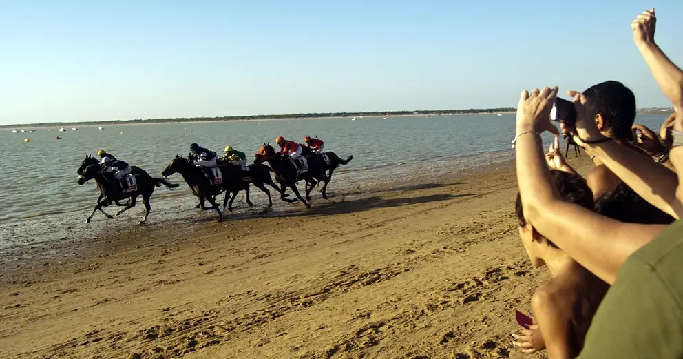 El espectáculo comienza cuando cae la tarde y baja la marea. Son las carreras de caballos de Sanlúcar de Barrameda, aquellas que nacieron hace casi dos siglos, y que están declaradas de interés turístico internacional desde 1997.