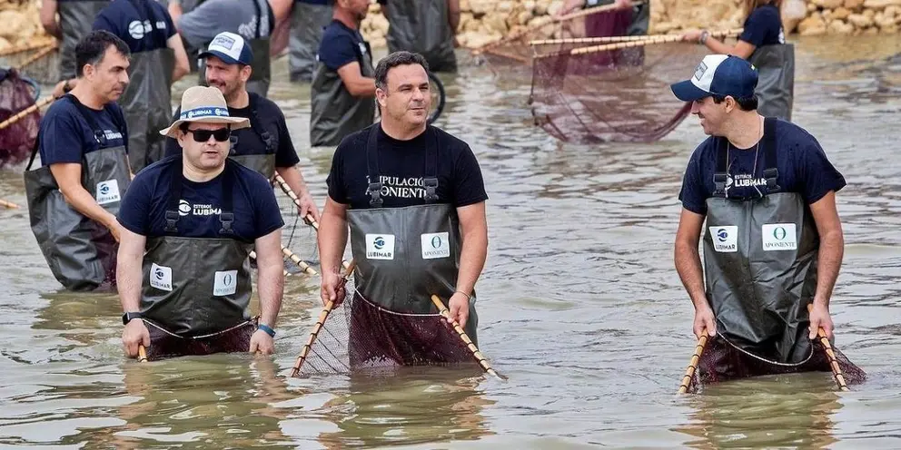 En la reunión prodigada por Ángel León han acudido compañeros suyos de profesión como los chefs Joan Roca, los hermanos Torres, Ricard Camarena, Francis Paniego, Quique Dacosta, Rafa Zafra... Todos ellos ataviados con enormes botas especiales para pescar, se introdujeron en las piscinas para coger un número importante de peces solo con una red manual que cada uno portaba en sus manos.