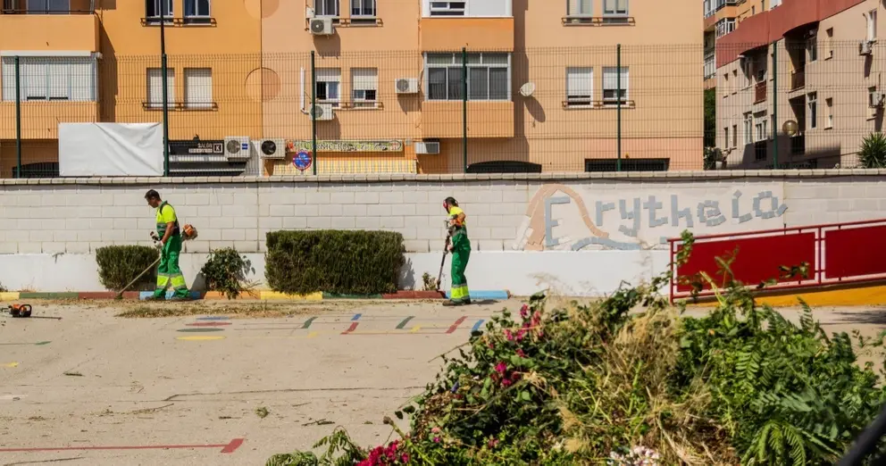 En paralelo, la empresa de parques y jardines está realizando labores de limpieza y desbroce en el interior de todos los colegios de Infantil y Primaria.