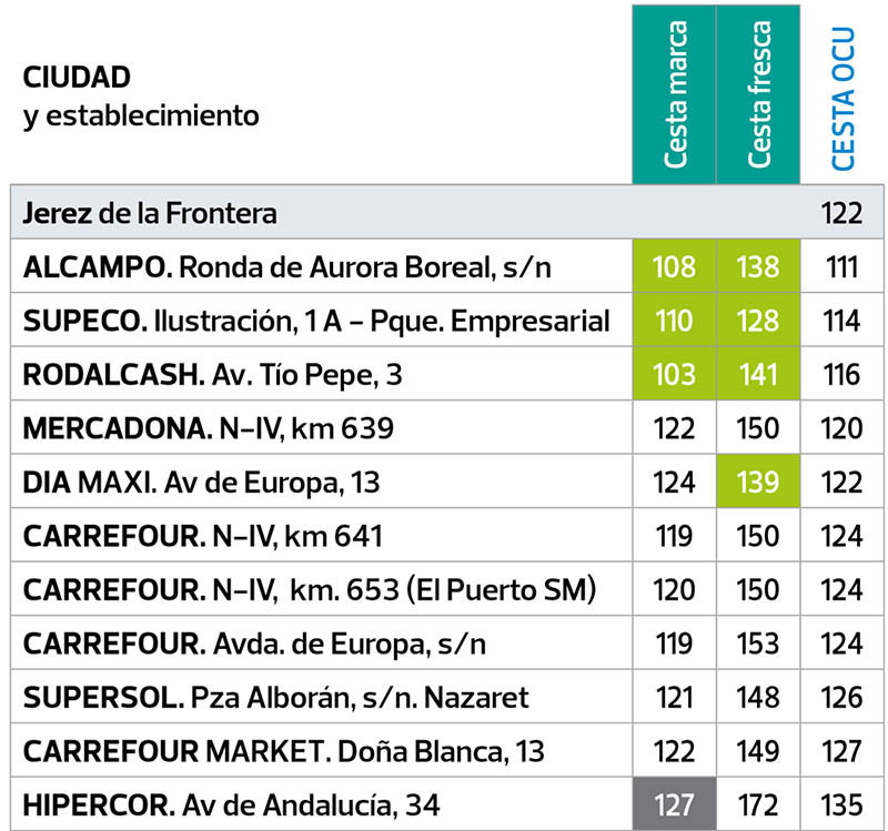 En Jerez, Alcampo lidera de manera amplia el ranking de comercios más económicos para llenar el carro de la compra, por encima de Supeco, Rodalcash, Mercadona, DIA, Carrefour, Supersol e Hipercor. Además, continúa mejorando en la rebaja de precios, dada su política de venta al consumidor, en la que buscan siempre tener los productos más baratos que en el resto de comercios de su zona de influencia. Además, Alcampo es también el más económico en la provincia de Cádiz . Entre las curiosidades a destacar: Jerez de la frontera se encuentra entre los lugares de España donde los precios de la carne están más baratos por término medio.