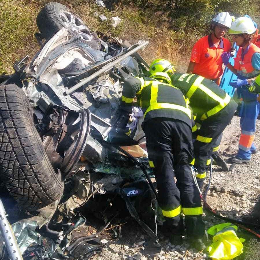 Bomberos del Parque de Los Barrios, con apoyo del Parque de Algeciras, han rescatado en la tarde del domingo al conductor de un vehículo, un Toyota Land Cruiser, tras el accidente de tráfico sufrido en el kilómetro 78 de la carretera A-381.
