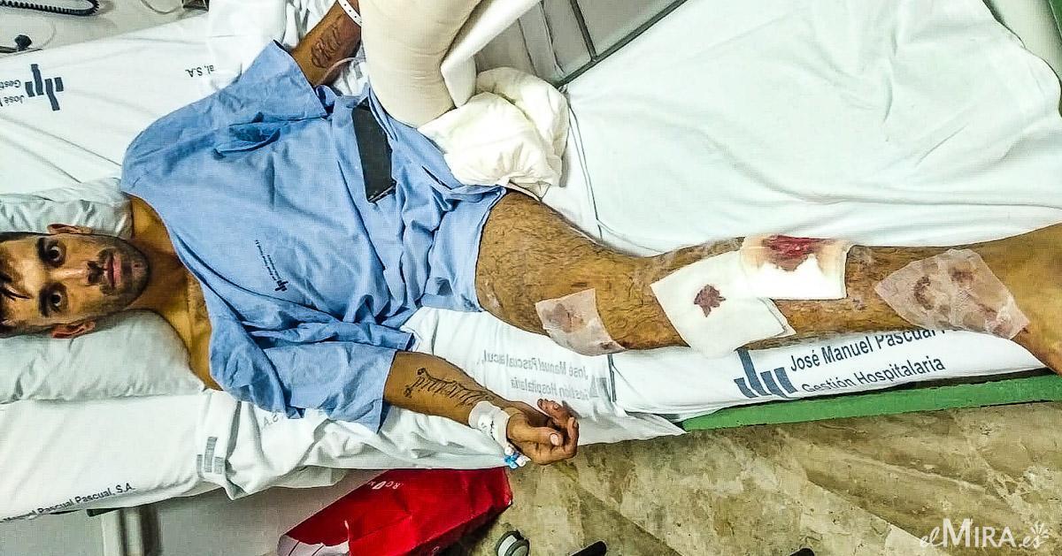 Operado en varias ocasiones, con múltiples fracturas y heridas de consideración, se encuentra en silla de ruedas y a punto de ser desahuciado