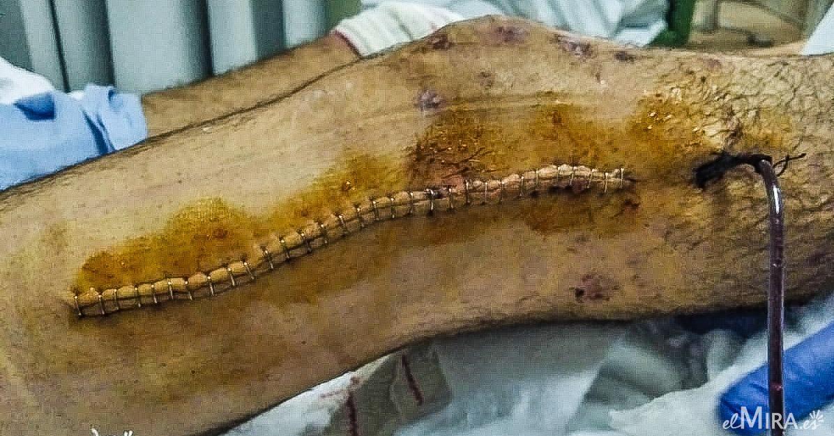 Pierna de Víctor tras ser intervenida