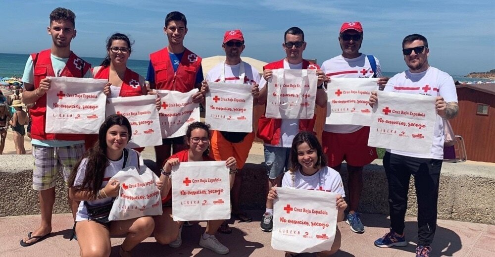 Cruz Roja reparte en las playas bolsas reutilizables para concienciar sobre mantener espacios libre de basura