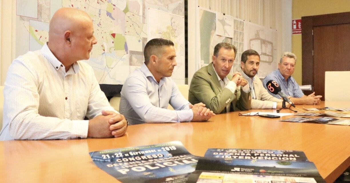 El alcalde de Chiclana, José María Román; el presidente de la Federación Andaluza de Lucha y Disciplinas Asociadas, Miguel Ángel Sierra; el director técnico del departamento de Kobudo Policial, Antonio Javier Mínguez; el entrenador nacional quinto dan de defensa personal policial, Salvador Rodríguez, y el delegado municipal de Policía Local, José Manuel Vera, han presentado el Congreso de Defensa Personal e Intervención Policial, que se celebrará los días 21 y 22 de septiembre en Chiclana, concretamente en las instalaciones del Hotel Valentín Sancti Petri y el entorno de Novo Sancti Petri. Además, esta cita está organizada por el Departamento de Defensa Personal Policial de la Federación Andaluza de Lucha, en coordinación con la Asociación Zen-Bu-Jitsu de Chiclana.