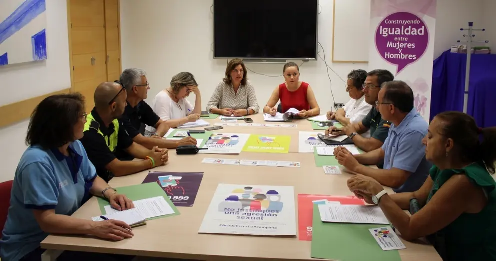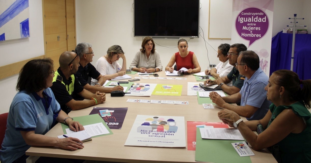 La delegada municipal de Mujer, Pepa Vela, y la coordinadora provincial del Instituto Andaluz de la Mujer, Pepi Moreno, han mantenido una reunión con miembros de la Guardia Civil y de la Policía Local, así como con representantes de los centros de salud Padre Salado y Jesús Nazareno y de la Coordinadora del Servicio de Urgencias de la Longuera para presentarles el servicio de atención inmediata a mujeres víctimas de violencia sexual, además del protocolo de actuación de este nuevo servicio de atención psicológica y jurídica urgente que se activa ante las llamadas por agresiones sexuales recibidas a través del teléfono de Información a la Mujer (900200999).