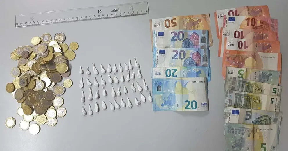 Una vez detenido, se le incautaron unos 300 euros en moneda fraccionada fruto de las ventas realizadas y numerosas dosis de heroína listas para su distribución, que el conductor vendía en puntos determinados de la localidad que convenía previamente con los compradores.