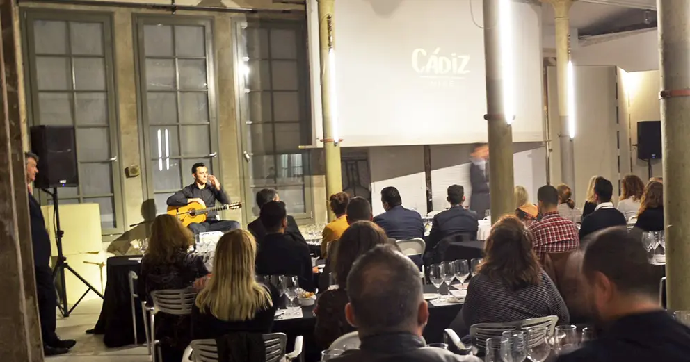 Para terminar el evento se celebró una cena temática y maridada que estuvo guiada por César Saldaña, Director General del Consejo Regulador de la Denominación de Origen Jerez-Xeres-Sherry. El Patronato Provincial de Turismo ha pretendido así mostrar la oferta paralela a los congresos en la provincia, en este caso con el flamenco como muestra de nuestra cultura y la cena maridada con jerez, como ejemplo de nuestra gastronomía.