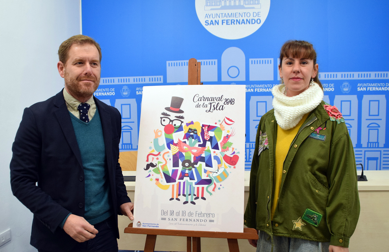 El Carnaval de La Isla 2018 ya tiene cartel. Hoy martes se ha presentado a los medios en rueda de prensa con la presencia de su autora, la diseñadora isleña Natalia Revuelta, que ha descubierto su obra acompañada de la concejala de Fiestas, Mar Suárez, y ante la presencia del concejal de Presidencia, Desarrollo Económico y Turismo, Conrado Rodríguez.