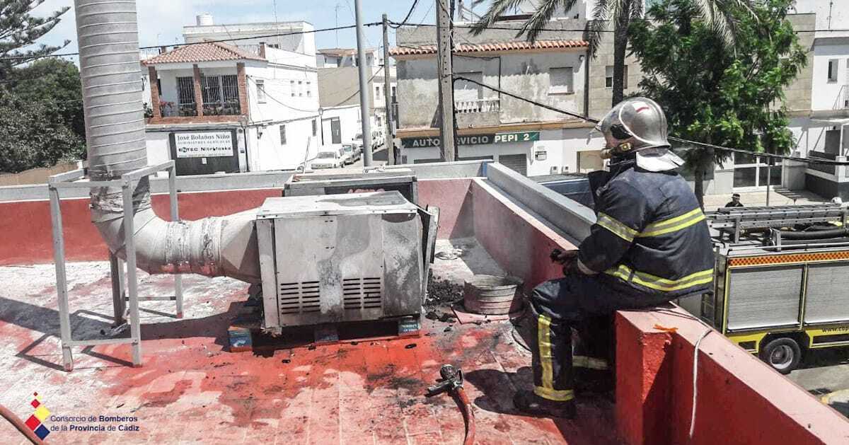 Bomberos del parque de Sanlúcar, con apoyo y refuerzo del parque de El Puerto de Santa María, han intervenido a las 13:02 horas de la tarde del domingo en el incendio ocurrido en un asador de pollos en el número 156 de la avenida de Rota, en la localidad de Chipiona.