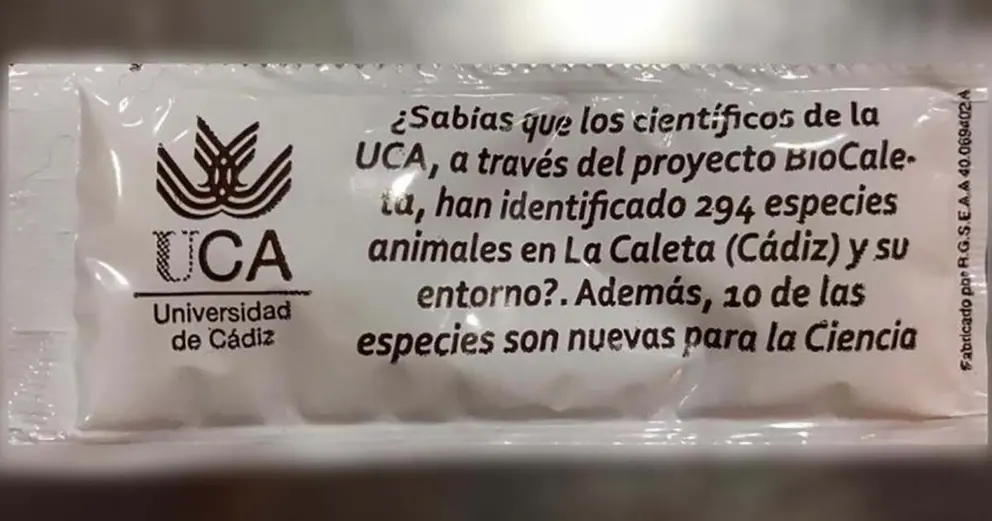 Más de un millón de sobres de azúcar con frases relacionadas con la investigación científica que se lleva a cabo en la Universidad de Cádiz han sido distribuidos en distintos establecimientos de la provincia gaditana
