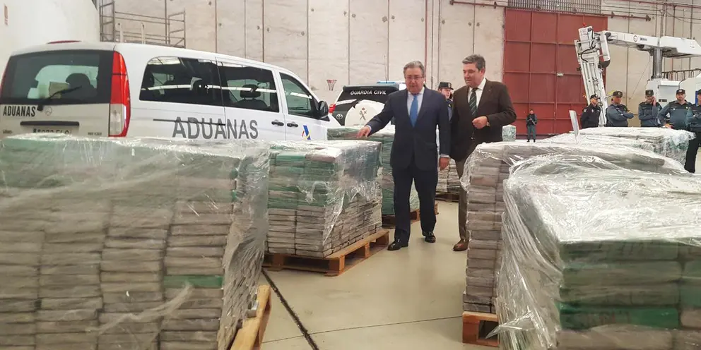 El titular de Interior explicó lo laboriosa que resultó la operación realizada por la Guardia Civil teniendo en cuenta el volumen de contenedores de frutas de entrada que se registran en el Puerto de Algeciras, procedentes de África y Latinoamérica con destino a Europa.