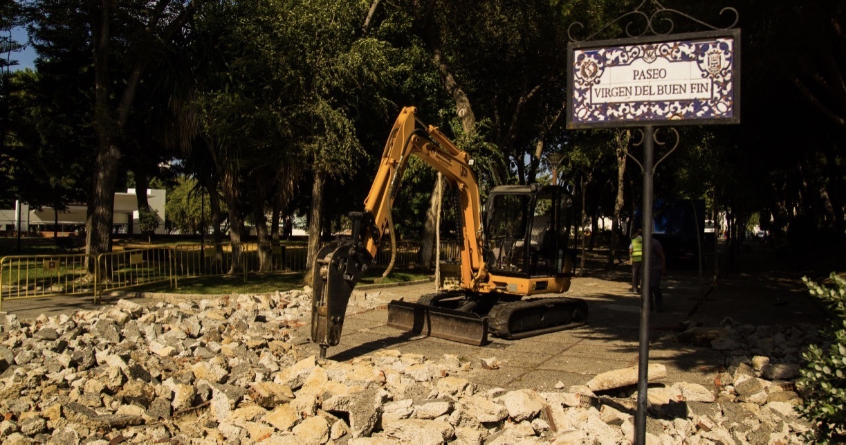 Este martes se han iniciado los trabajos de mejora del suelo en el Paseo del Buen Fin, situado en el Parque Almirante Laulhé. Las obras se van a centrar en el levantado y demolición de la actual solería, y una posterior reposición de la solera de hormigón.