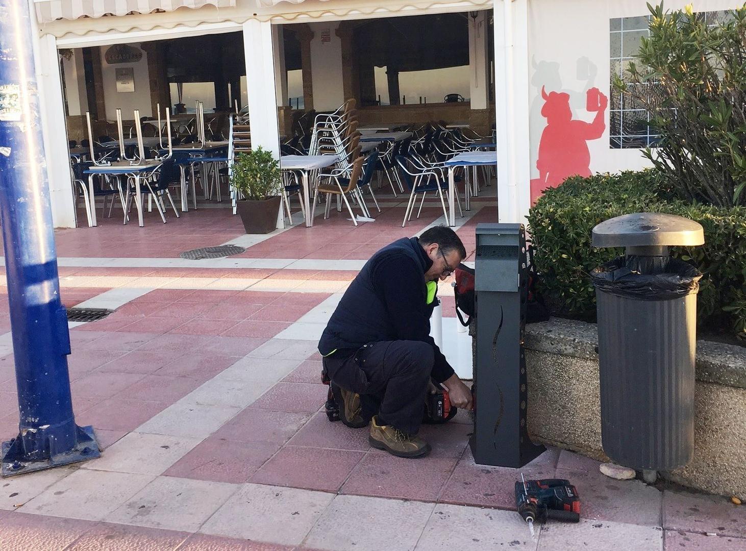 Instalan ceniceros en las papeleras del centro de Chiclana