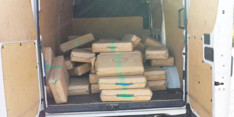 En un momento determinado realizaron señales reglamentarias para identificar a los ocupantes de una furgoneta de la marca Iveco modelo Daily en cuyo interior se trasportaban 70 fardos de hachís envueltos en sacos de arpillera.