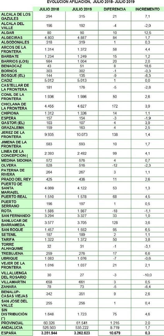 En el último año (datos de afiliación de autónomos de último día publicados por el Ministerio de Trabajo y Seguridad Social de julio 2018 – julio 2019), el número de autónomos en la provincia de Cádiz aumentó un 2%, lo que en términos absolutos se tradujo en 1.215 nuevos trabajadores por cuenta propia y situando la cifra total del colectivo en 61.541 cotizantes al Régimen Especial de Trabajadores Autónomos (RETA).
