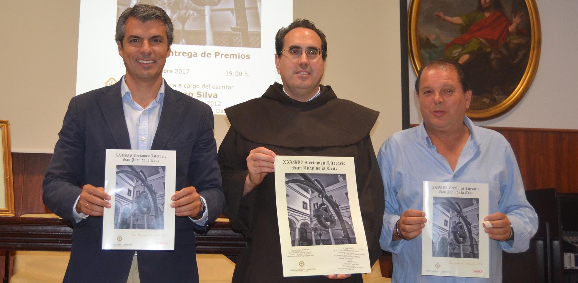 El primer teniente de alcaldesa y delegado de Promoción de la Ciudad, Fran Romero; el director del Colegio Liceo Sagrado Corazón, Serafín Galindo, y el profesor del Departamento de Lengua y Literatura de dicho centro, Jesús García, han presentado esta mañana en la sala de conferencias de este colegio el XXVIII Certamen Literario San Juan de la Cruz. Dicho certamen está organizado por el Liceo Sagrado Corazón y cuenta con la colaboración del Ayuntamiento de San Fernando, El Corte Inglés, las Hermandades del Carmen y del Santo Entierro, la AMPA del centro, el Coro Carmelitano San Juan de la Cruz, Unicaja, las editoriales Anaya y Edelvives, Viajes Halcón, Salser Sport y Hermanos García Pavón.