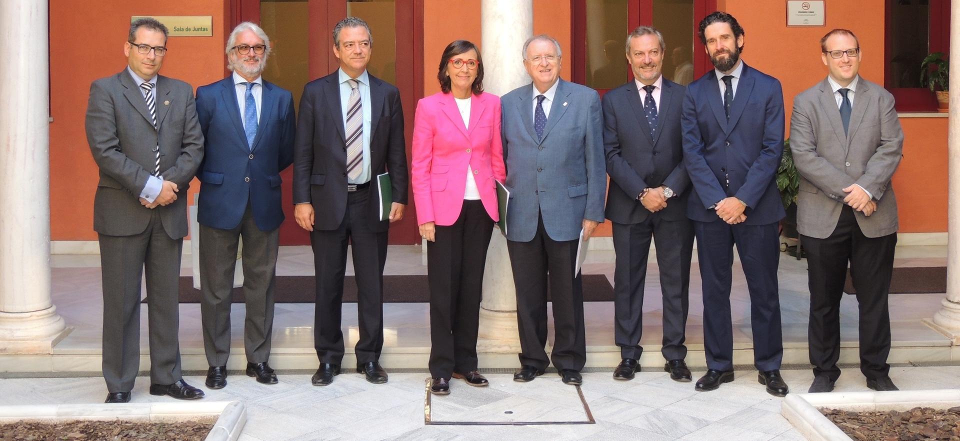La consejera de Justicia e Interior, Rosa Aguilar, se ha reunido hoy en Sevilla con representantes del Consejo Andaluz de Colegios Oficiales de Graduados Sociales para abordar las necesidades de estos profesionales en el ámbito de las jurisdicciones Social y Mercantil.