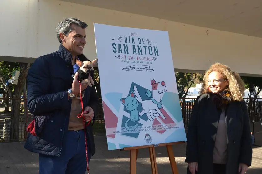 El primer teniente de alcaldesa y delegado general del Área Municipal de Desarrollo Sostenible, Fran Romero, y la concejal de Bienestar Animal, Mar Suárez, han presentado hoy, Día de San Antón, en el Parque Almirante Laulhé la programación de actividades elaborada con motivo del Día de San Antón 2018, que se desarrollará el próximo domingo 21 de enero en dicho espacio. Se trata de un programa elaborado por el Área Municipal de Desarrollo Sostenible en colaboración con la Concejalía de Bienestar Animal que reúne numerosas actividades en las que las mascotas de las familias isleñas son las grandes protagonistas y que harán de la mañana del próximo domingo una cita única e ineludible para pequeños y mayores.