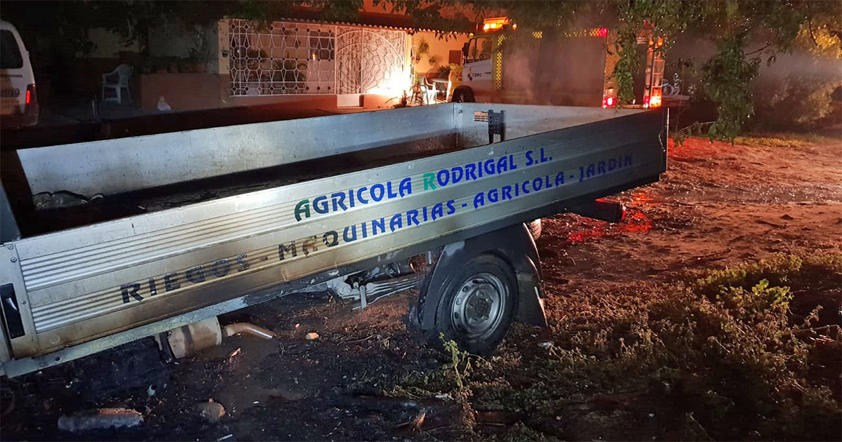 Las llamas en una camioneta batea afectan a una palmera colindante