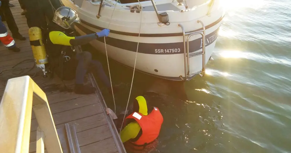 El barco estaba atracado en medio del caño de Sancti Petri y fue remolcado hasta el pantalán. Posteriormente el cuerpo fue rescatado por dos Bomberos equipados con trajes de neopreno y equipos de respiración autónoma.