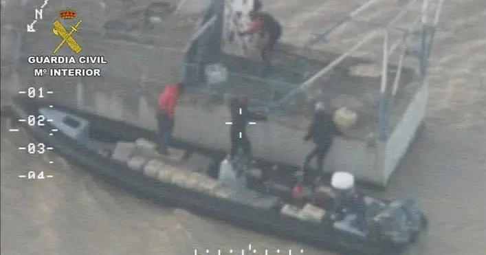 De manera inmediata se activó un dispositivo para verificar si se podía tratar de un posible alijo, participando en el seguimiento un helicóptero de la Unidad Aérea de la Guardia Civil, grabando como la embarcación se acercaba a una de las camaroneras ancladas en el río para transportar la droga de una embarcación a otra.