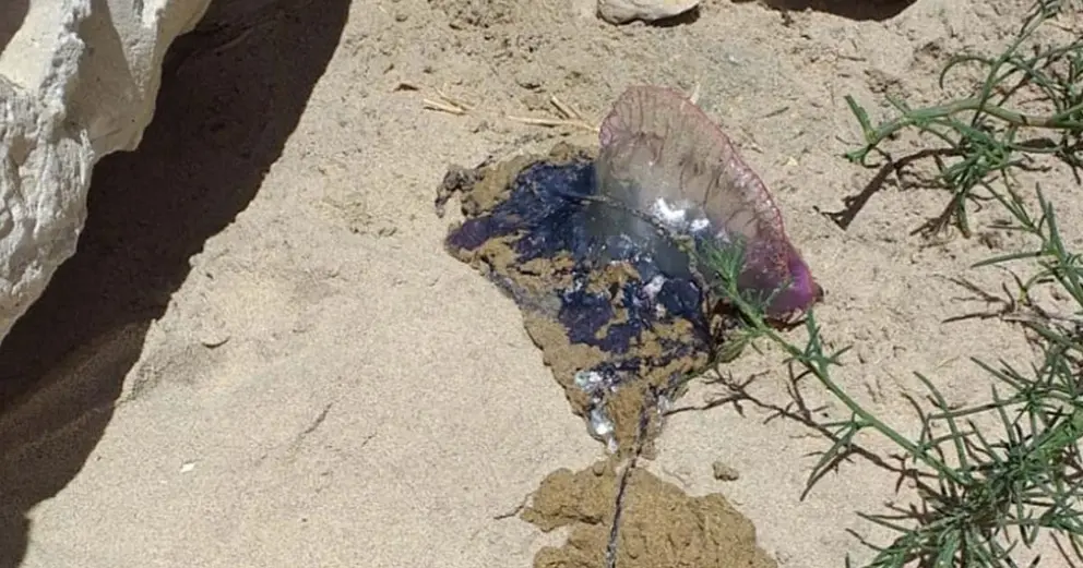 Con esta carabela es la segunda que aparece en costas gaditanas en lo que va de día y las autoridades aconsejan avisar inmediatamente a los Servicios Operativos de Playas o llame al 112, por el peligro que presentan las picaduras de este tipo de medusas.