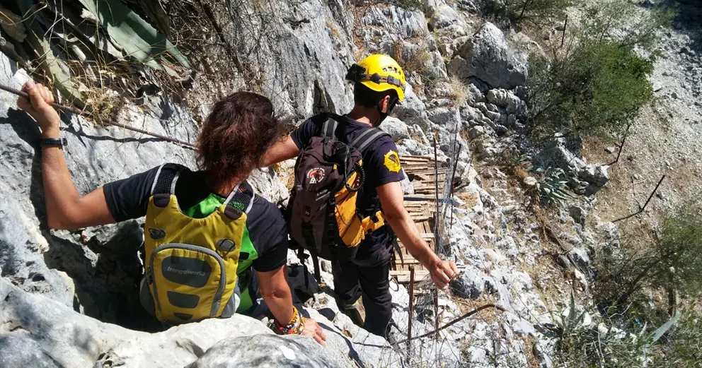 Bomberos del Grupo de Rescate en Montaña del Consorcio de Bomberos de la Provincia de Cádiz con sede en Ubrique han intervenido en localizar y acceder hasta una senderista que se había quedado atrapada en una pared ante un cortado en la zona del Garciago.