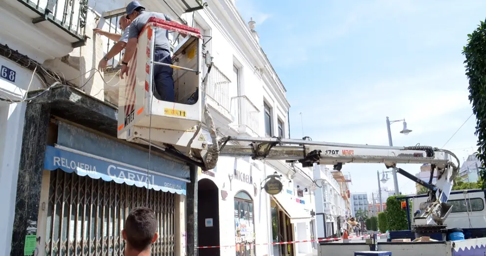 La retirada de estas dos placas ubicadas en pleno centro de la ciudad se sumaba a las actuaciones que desde primeras horas de la mañana han venido llevando a cabo operarios municipales. De esta manera, en la calle Asturias se ha suprimido el rótulo que rezaba ‘Hogar del Frente de Juventudes de FET y de las JONS’, y poco después una placa en la calle Moguer con simbología falangista y del sindicato vertical de entonces conmemorativa de la construcción de viviendas en 1957. Tras su retirada, se comenzado a resanar y pintar los muros donde se encontraban estos vestigios.