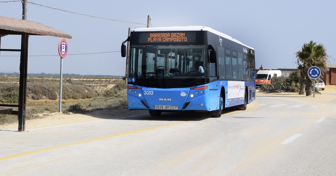 La línea especial a la playa de Camposoto (Barriada Bazán-San Marcos- Playa de Camposoto) tendrá su primera parada en la barriada de la Bazán a las 11 de la mañana los días laborales y festivos, así como fines de semanas y el último autobús saldrá a las 20,30 horas de la Bazán. En cuanto al regreso desde la playa de Camposoto, el primer autobús saldrá a las 11,30 horas y el último, a las 21,00 horas. Esta línea realizará el trayecto Barriada Bazán, San Juan Bosco, San Marcos, San Onofre, avenida Constitución, Buen Pastor y playa de Camposoto.