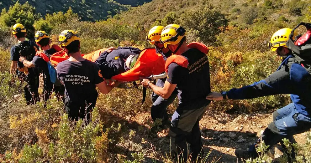 El domingo a mediodía se requirió la ayuda de Bomberos para el traslado de una senderista que se había accidentado haciendo una ruta en Zahara de la Sierra.
