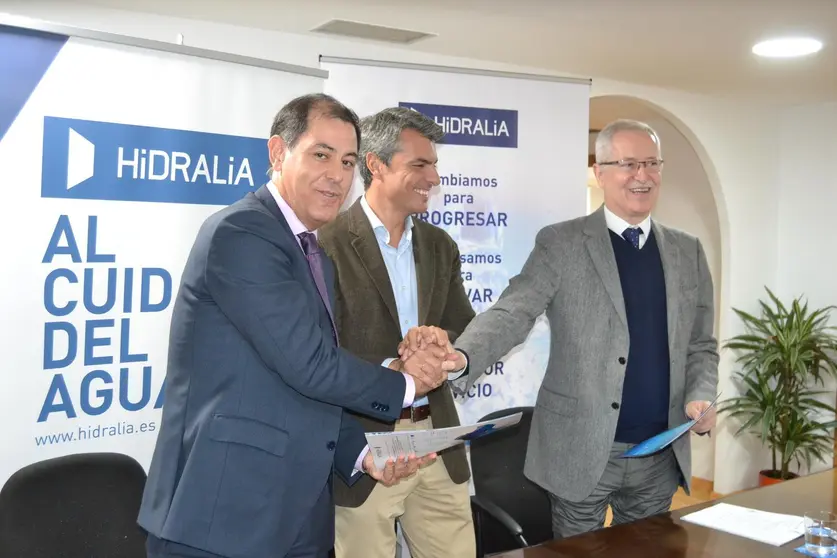 El primer teniente de alcaldesa y delegado general del Área Municipal de Desarrollo Sostenible, Fran Romero, ha presidido esta mañana en las oficinas de Hidralia en San Fernando el acto de firma del convenio de colaboración entre la Universidad de Cádiz (UCA) y esta empresa, concesionaria del servicio municipal vinculado a la gestión integral del ciclo del agua. Este convenio ha sido rubricado por el gerente de Hidralia, José Luis Trapero, y el Vicerrector de Transferencia e Innovación Tecnológica de la UCA, Javier Pérez.