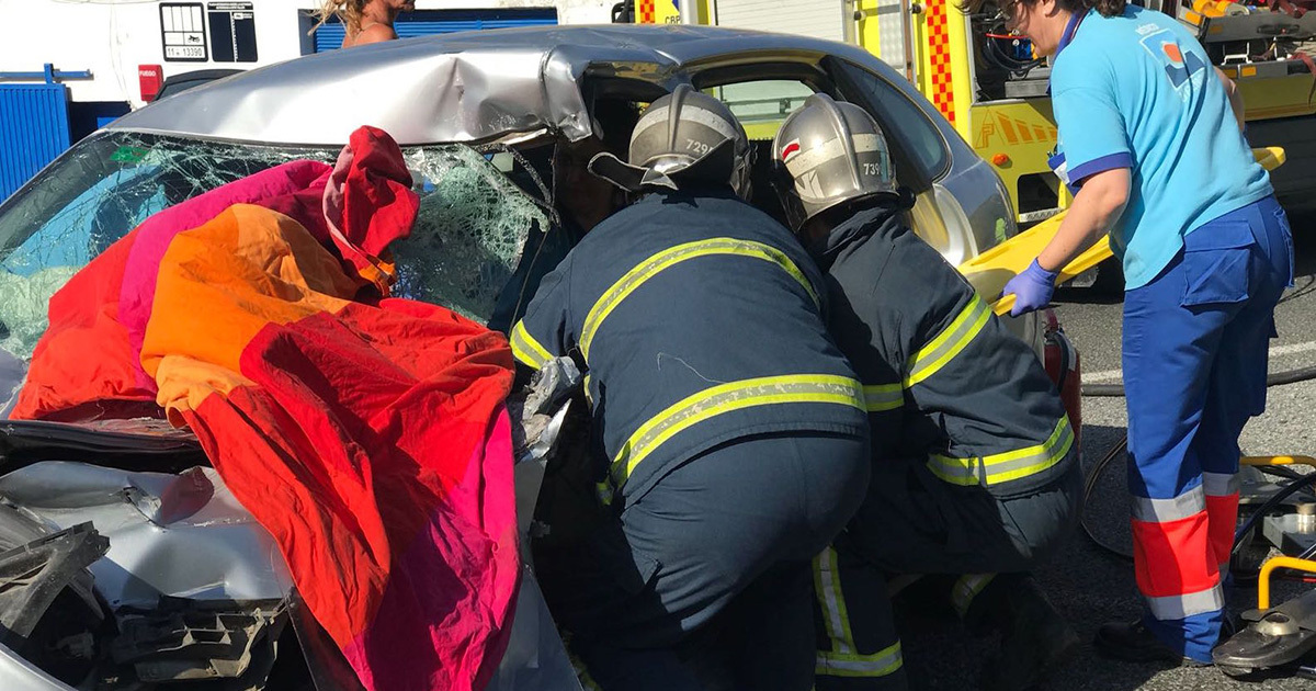 Gracias a su equipo de excarcelación, los bomberos del parque de Conil retiraron las puertas del lado del conductor y el bastidor central del coche y desbloquearon los asientos, rescatando al conductor para que le atendiesen los facultativos sanitarios.