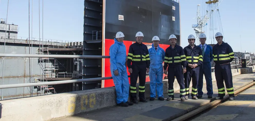 El delegado del Gobierno de la Junta de Andalucía en Cádiz, Juan Luis Belizón, acompañado de la delegada territorial de Economía, Innovación, Ciencia y Empleo, Gema Pérez, realizó una visita a los astilleros de Navantia en Puerto Real con el objetivo de recorrer las instalaciones y conocer de primera mano los procesos productivos de la compañía y la necesidad de mano de obra especializada y cualificada que demanda el sector en la actualidad. De esta forma, la Junta puede avanzar en la definición de los perfiles del nuevo mapa formativo que está trabajando para la provincia de Cádiz.