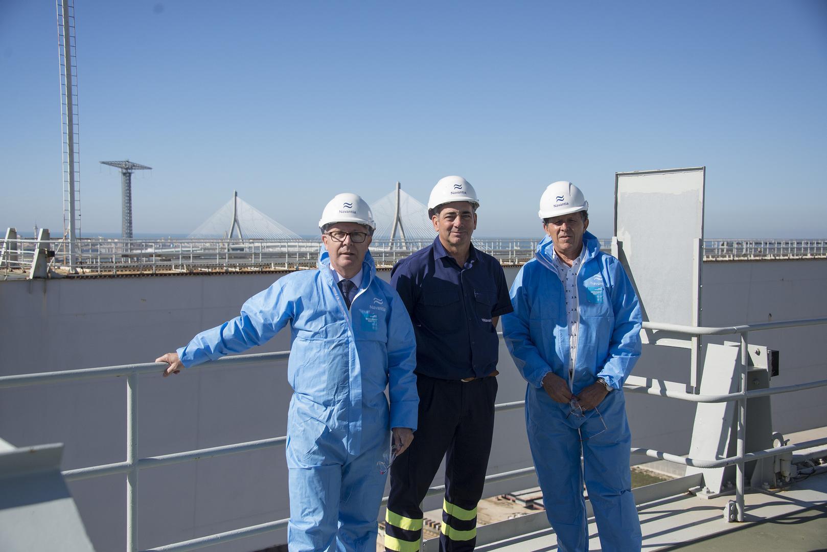Así, Belizón y Pérez recorrieron junto al director de los astilleros de Navantia en la Bahía de Cádiz, Pablo López, y junto al director de I+D de Navantia, Fran Abad, parte de las instalaciones como el taller de bloques curvos, donde pudieron observar el avance en la construcción del segundo de los petroleros Suezmax; las grúas pórtico; la dársena, en la que pudieron ver el primer petrolero ya flotado; el taller de fabricación aditiva; y por último, el espacio que albergará el Centro de Innovación en Tecnologías de Fabricación Avanzada (CFA), que en una primera fase se alojará en una nave ya remodelada de la empresa naval.
