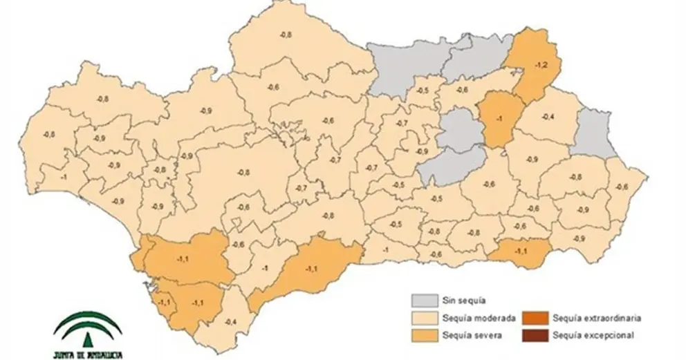 Concretamente, y según los datos recabados por Europa Press del estudio comarcal para el mes de junio de la Consejería de Agricultura, Ganadería, Pesca y Desarrollo Sostenible, hay siete zonas en sequía meteorológica severa en la región: las cuencas del Guadalete y del Barbate en Cádiz, Guadalhorce en Málaga, Campo de Dalías en Almería y las sierras de Cazorla y Segura en Jaén. Todas estas suponen un total de 1.168.300 hectáreas de superficie de las 8.726.800 que abarcan la comunidad autónoma.