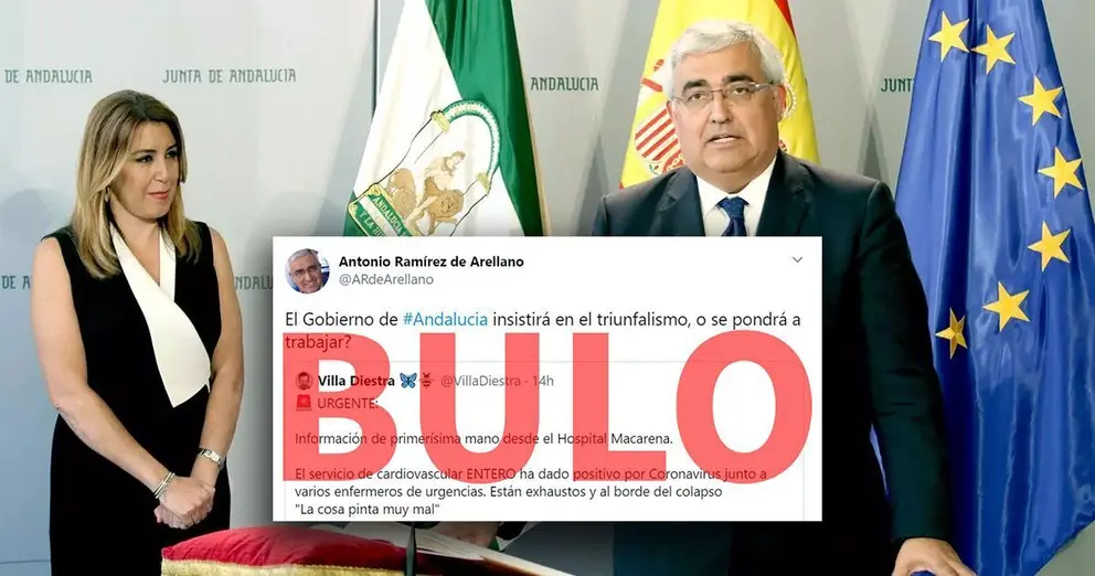 Asimismo, la Junta de Andalucía alerta de la "difusión de este tipo de bulos o informaciones falsas, publicadas sin el más mínimo respeto a la verdad y a la ética, y que buscan generar una alarma absolutamente injustificada entre los ciudadanos".